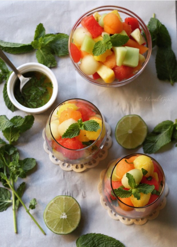 MELON SALAD WITH HONEY, LIME & MINT DRESSING