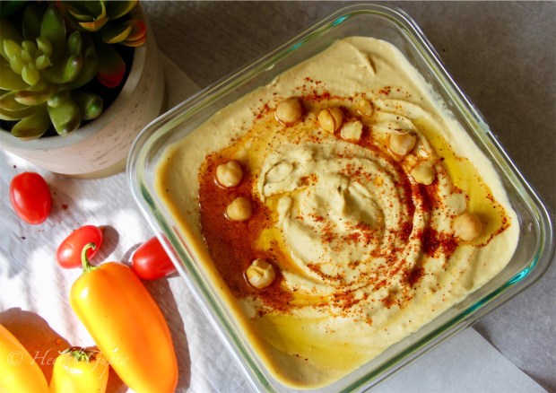 For the puff pastry, I went ahead and baked a frozen store bought pastry to cut corners. I whipped some hummus quickly as I have been past that stage of having store bought hummus since it is pretty easy to make your own if you have the basic ingredients like chickpeas and tahini on hand.