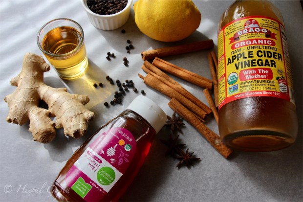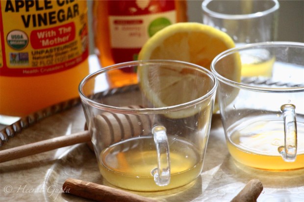 - Take a cup, add the whiskey, honey, lemon juice and apple cider vinegar.