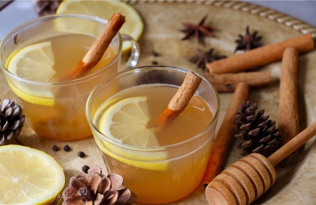- Garnish it with a lemon round and cinnamon and serve hot.